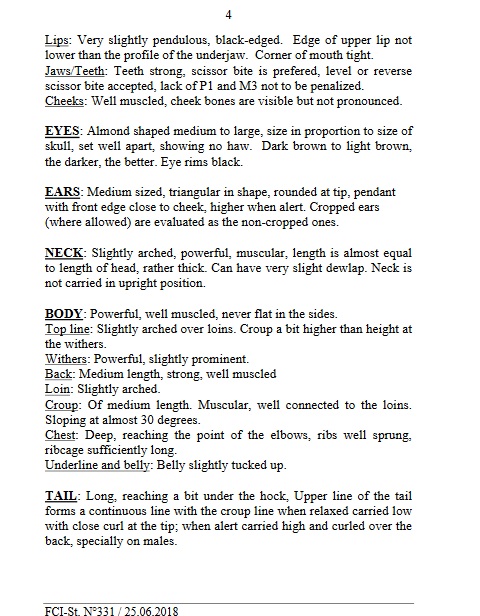 Below is the official standard set by KIF/FCI and examples of fitting dogs.